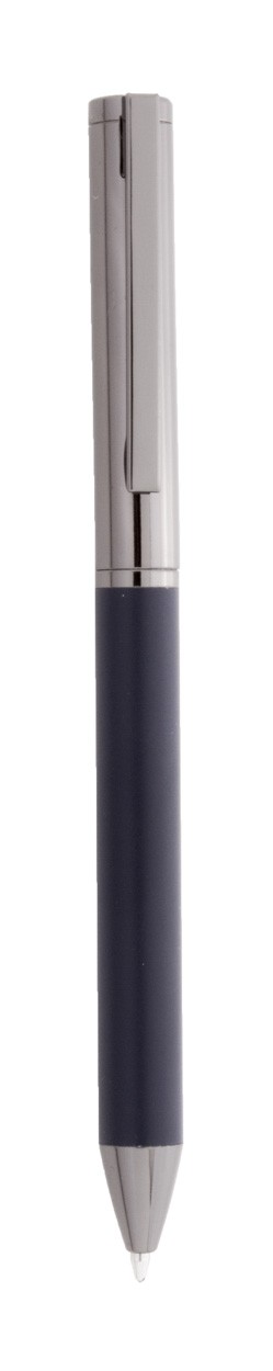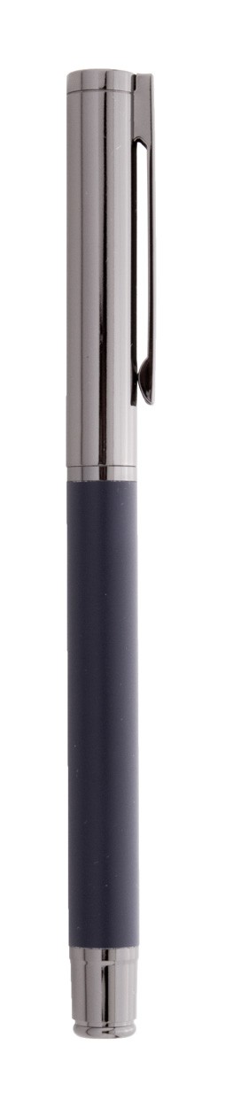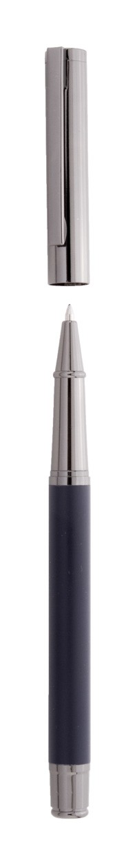 Set elegant de pixuri metalice, în cutie de cadou din hârtie neagră. Cu mină albastră.