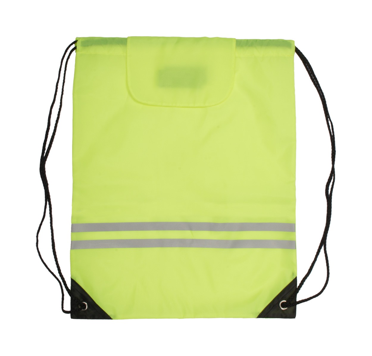 Rucsac cu 2 dungi reflectorizante. Închidere cu scai. Numai pentru uz promoțional, produsul nu se califică drept Echipament de protecție personală.
