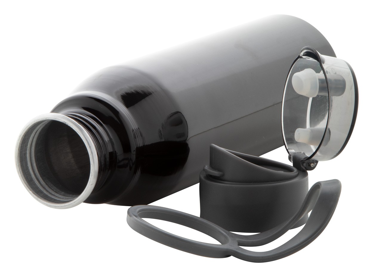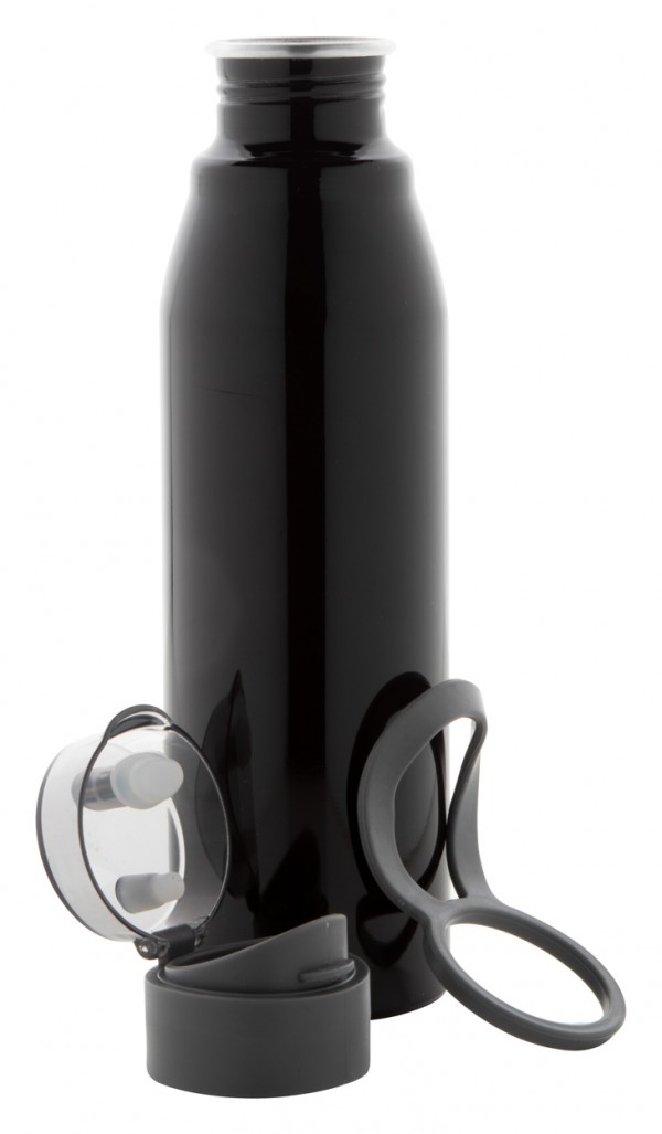 Sticlă sport din aluminiu, curea și capac transparent, 720 ml. Nu este potrivit pentru băuturi carbogazoase.