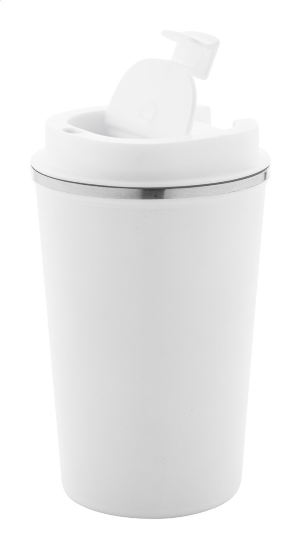 Pahar termoizolant, din oțel inoxidabil reciclat, cu perete dublu, cu capac de băut din PP. 350 ml.