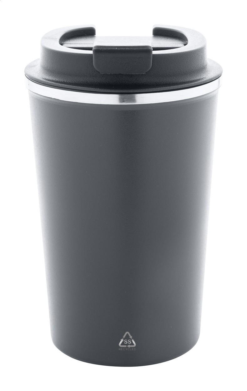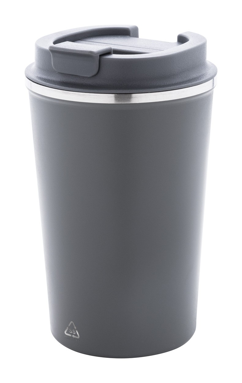Pahar termoizolant, din oțel inoxidabil reciclat, cu perete dublu, cu capac de băut din PP. 350 ml.