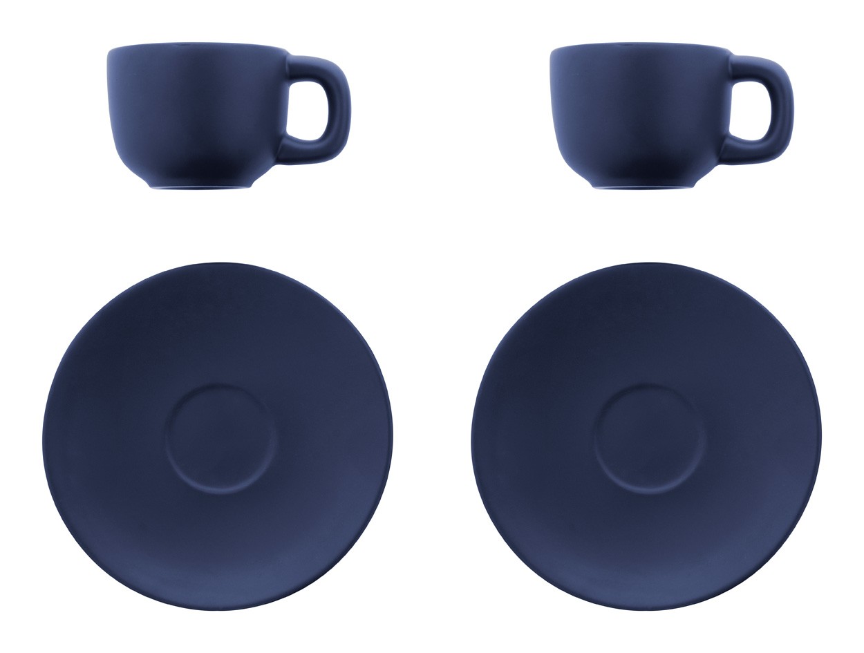 Set cești espresso, din ceramică de înaltă calitate, cu 2 cești și farfurioare. Cu finisaj mat exterior și lucios interior. 85 ml. În cutie de hârtie kraft.
