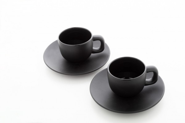 Set cești espresso, din ceramică de înaltă calitate, cu 2 cești și farfurioare. Cu finisaj mat exterior și lucios interior. 85 ml. În cutie de hârtie kraft.