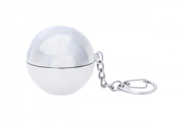 Balsam de buze de formă rotundă, cu aromă de vanilie, în suport metalic color, cu breloc metalic. Cu protecție SPF15.