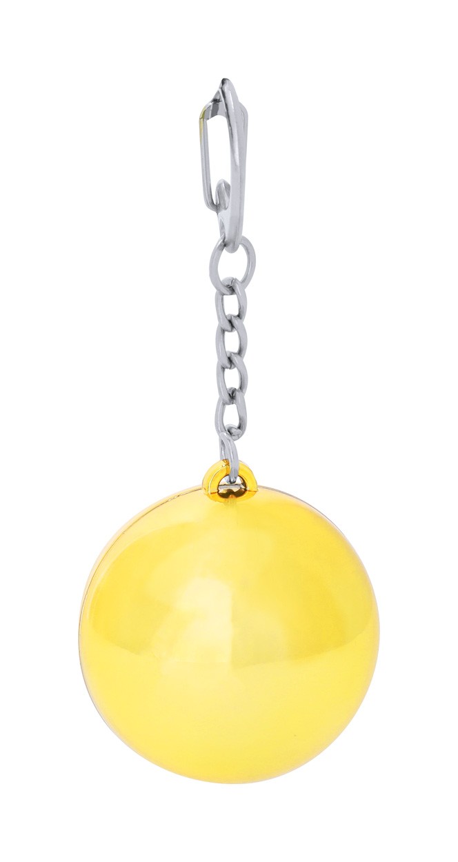 Balsam de buze de formă rotundă, cu aromă de vanilie, în suport metalic color, cu breloc metalic. Cu protecție SPF15.