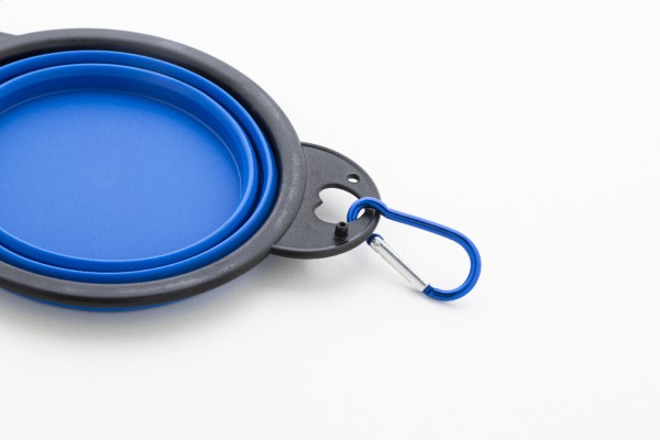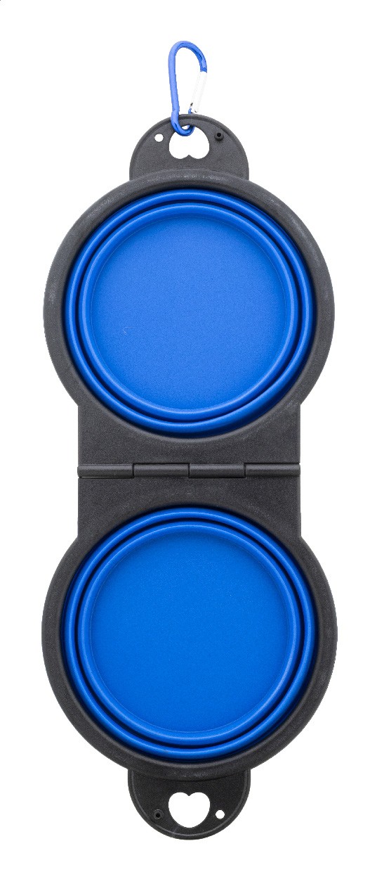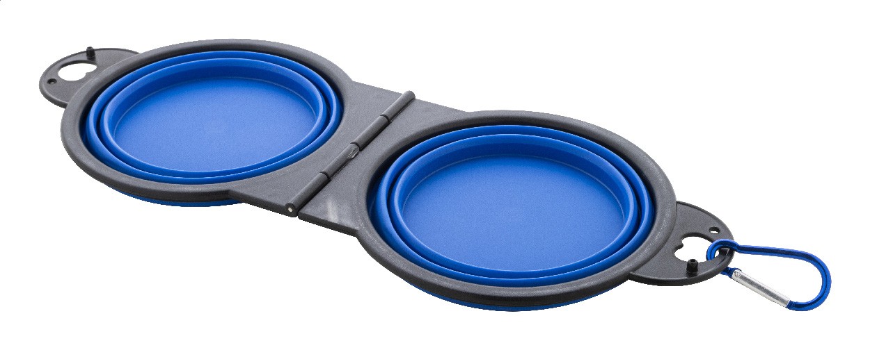 Bol pliabil pentru animale de companie, din TPE durabil, cu două compartimente de 450 ml și carabină din aluminiu de culoare asortată.