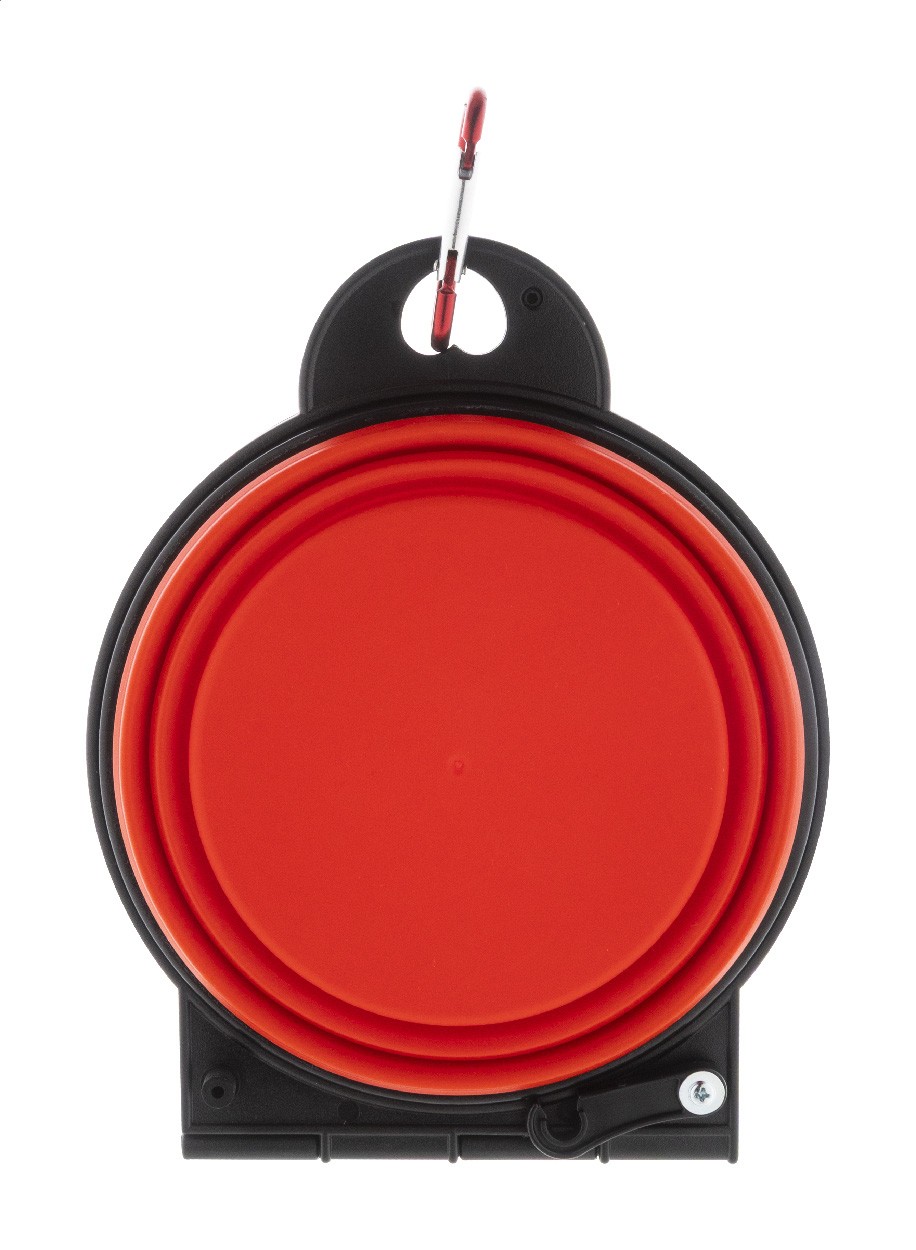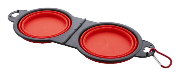 Bol pliabil pentru animale de companie, din TPE durabil, cu două compartimente de 450 ml și carabină din aluminiu de culoare asortată.