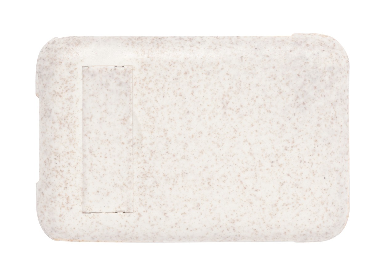 Set cablu încărcător USB, în carcasă din plastic ecologic din paie de grâu, cu funcție de suport telefon mobil. Cu ejector de cartelă SIM și conectori micro USB, USB-C și Lightning. Cu intrări USB și USB-C.