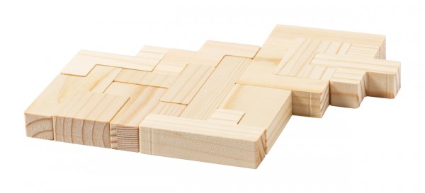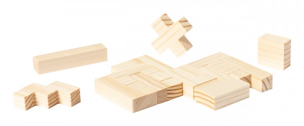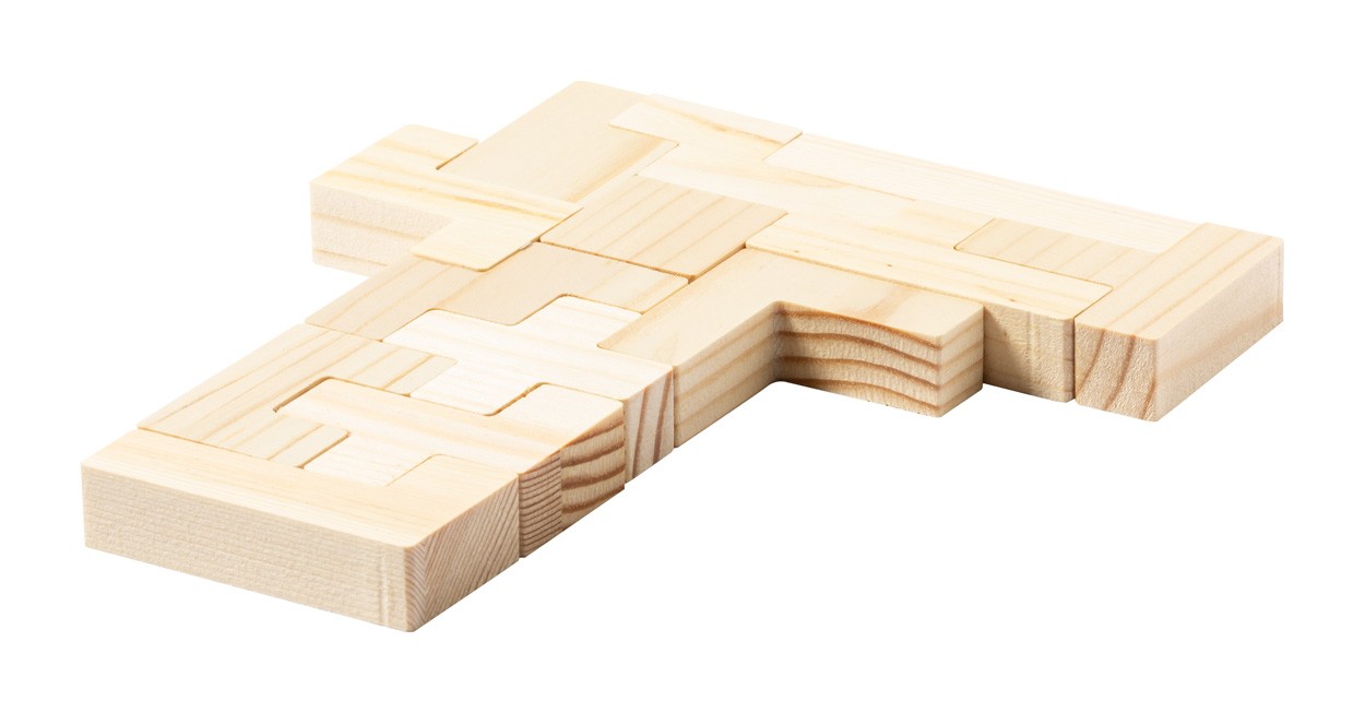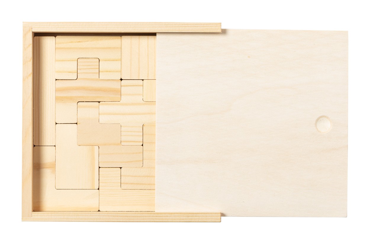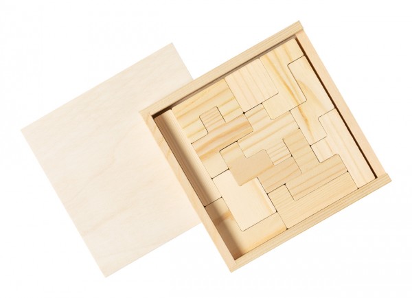 Joc puzzle, din lemn, de 13 buc, în cutie de lemn.