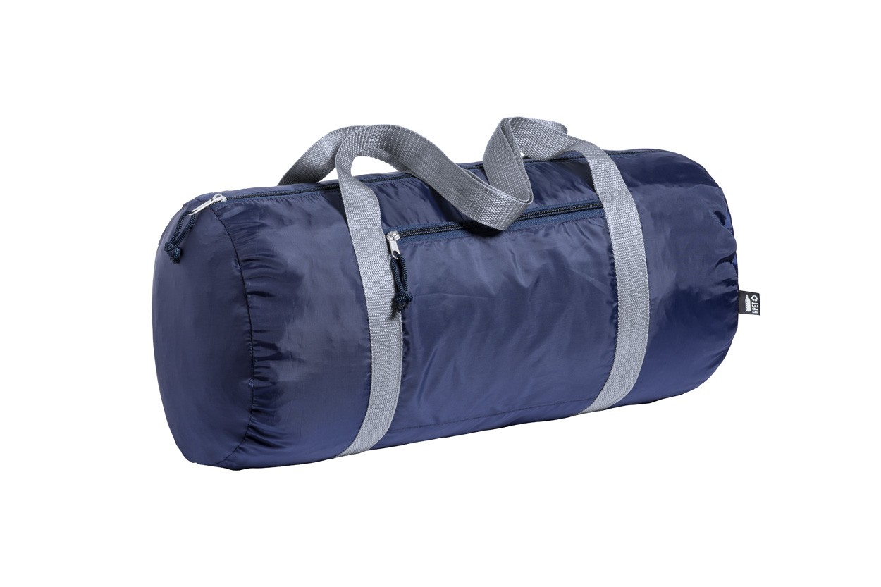 Geantă sport RPET cu compartiment cu fermoar si buzunar frontal. Poliester 290T RPET, cu etichetă distinctă RPET.