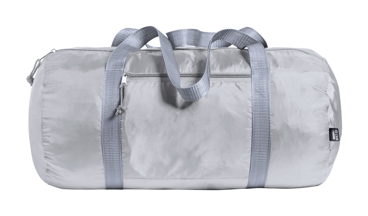 Geantă sport RPET cu compartiment cu fermoar si buzunar frontal. Poliester 290T RPET, cu etichetă distinctă RPET.