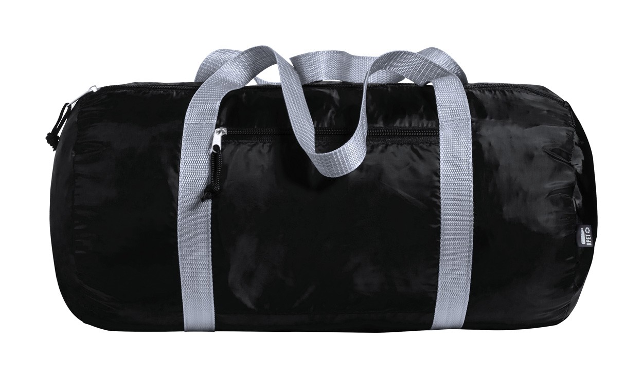 Geantă sport RPET cu compartiment cu fermoar si buzunar frontal. Poliester 290T RPET, cu etichetă distinctă RPET.