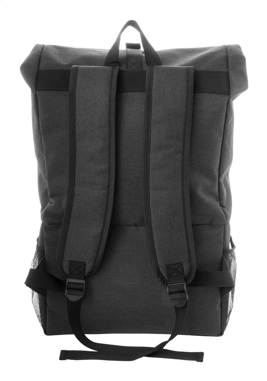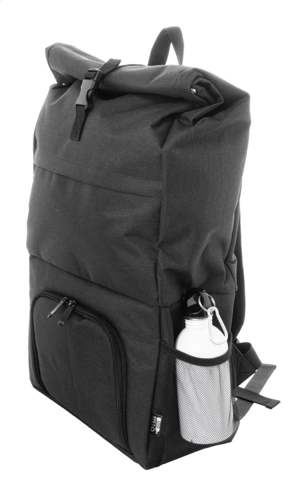 Rucsac frigorific rolltop, din RPET, cu compartiment frigorific căptușit PEVA cu fermoar pentru cutia de prânz. Cu compartiment principal de închidere cu cataramă, buzunar frontal cu fermoar, buzunare laterale din plasă și bretele căptușite. Poliester 600D RPET cu etichetă distinctivă RPET.