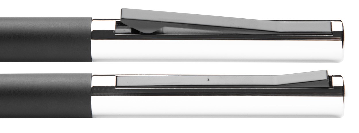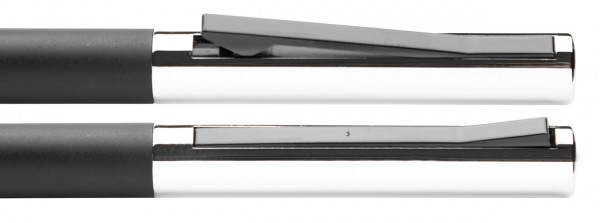 Pix din aluminiu în cutie din metal de aceeași culoare. Mină albastră.