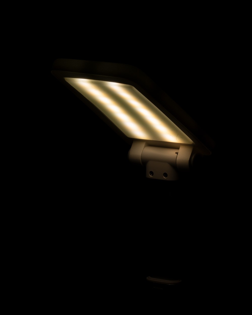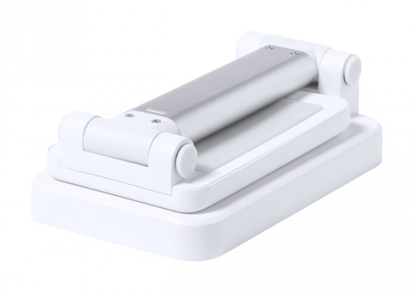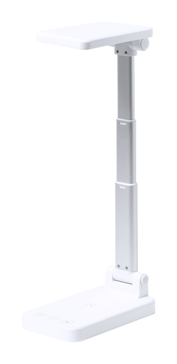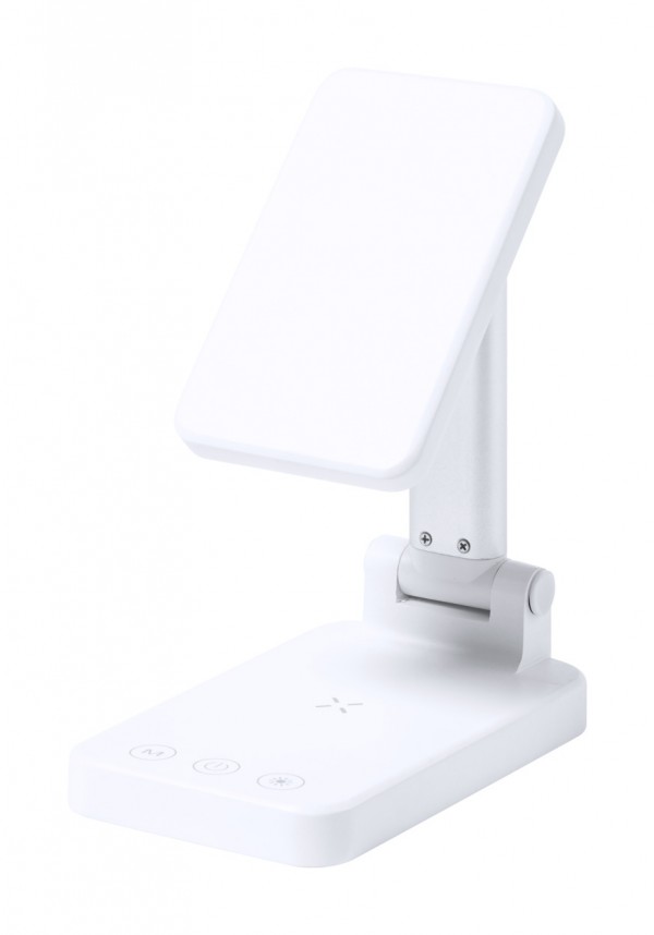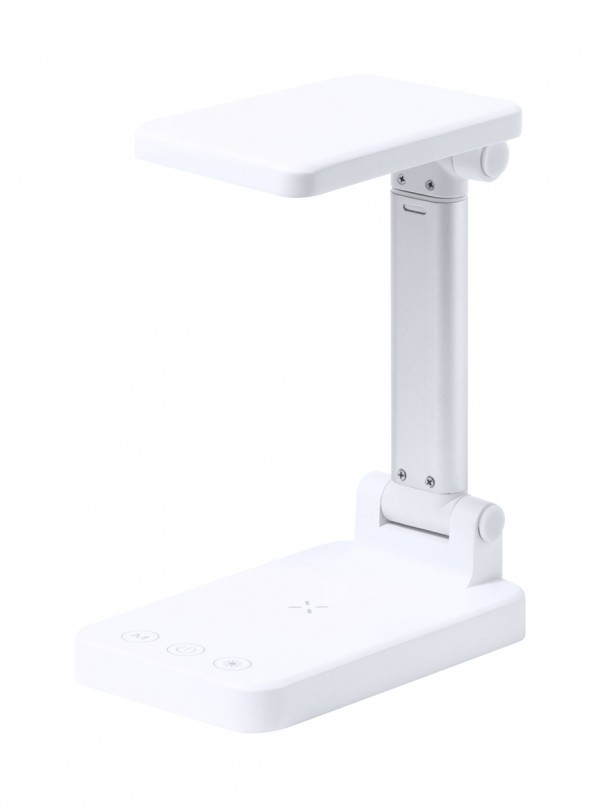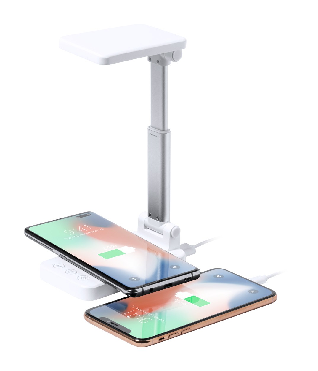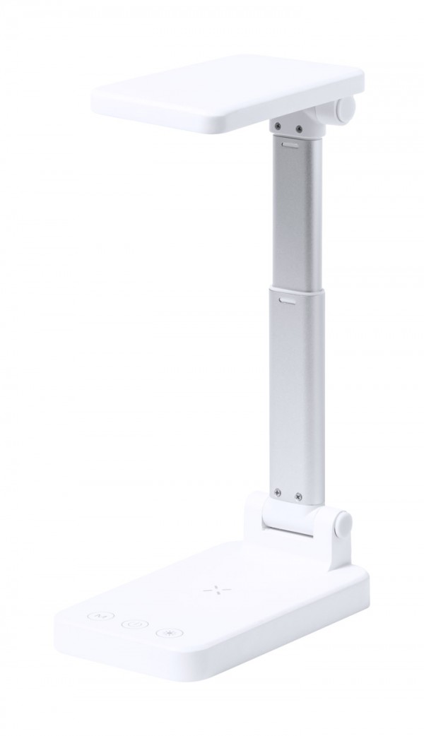Lampă de birou multifuncțională, pliabilă, din aluminiu și plastic ABS, cu 28 de LED-uri și 3 tipuri de lumină (caldă, albă și rece), luminozitate și înălțime reglabile. Cu baterie de 3000 mAh, încărcător rapid wireless încorporat (10W) și port pentru încărcător USB pentru încărcarea a 2 dispozitive simultan (1 fără fir și 1 prin cablu). Max. ieșire: 2000 mA. Inclusiv cablu de încărcare USB.