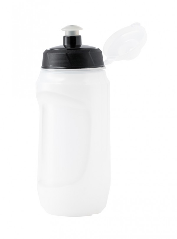Sticlă sport din plastic PE translucid cu capac de băut și capac transparent, 500 ml. Nu este potrivită pentru băuturi carbogazoase.