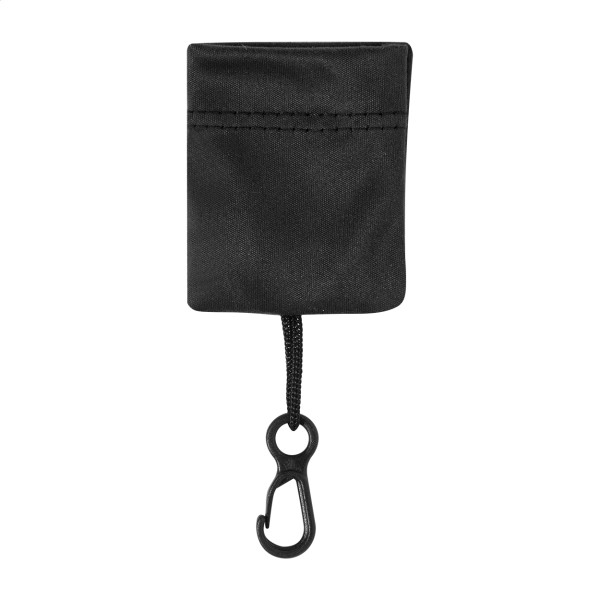 Cârpă de curățat, din microfibră 100% RPET (220 g/m²) pentru ochelari și ecrane. În husă de transport din material asortat, cu carabină din PP. Dimensiunea cârpei: 15×15 cm.