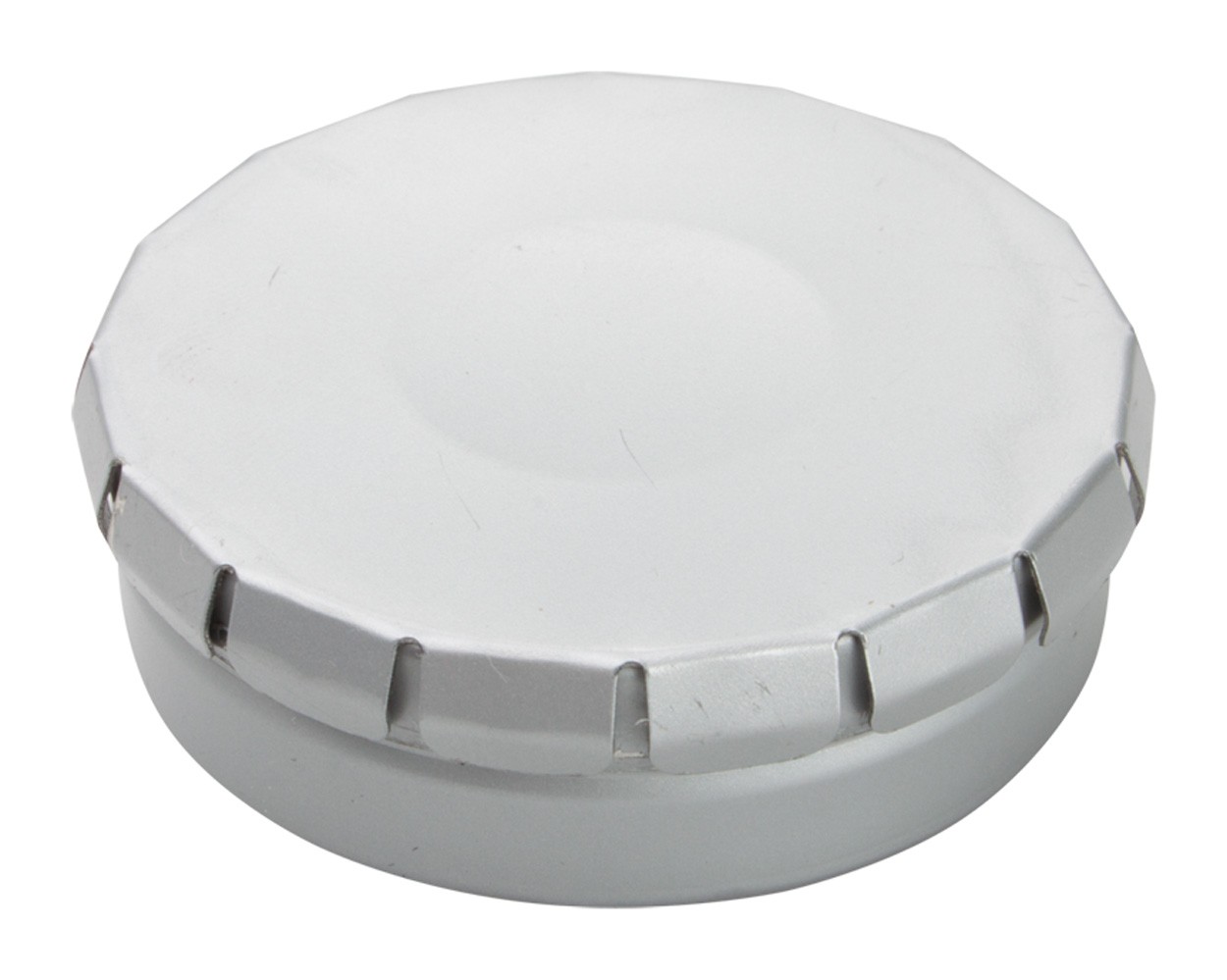 Cutie metalică rotundă cu cca. 12 grame bomboane mentolate. Poate fi deschisă prin apăsarea capacului.