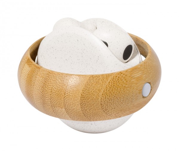 Căști stereo adevărate fără fir (TWS) cu funcție de apelare mâini libere în plastic ecologic din paie de grâu și carcasă de încărcare din bambus. Inclusiv cablu de încărcare USB.