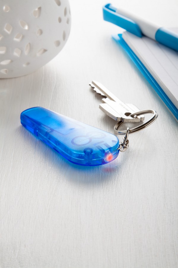 Breloc/ Fluier transparent cu mini LED, plastic colorat. Include baterii.