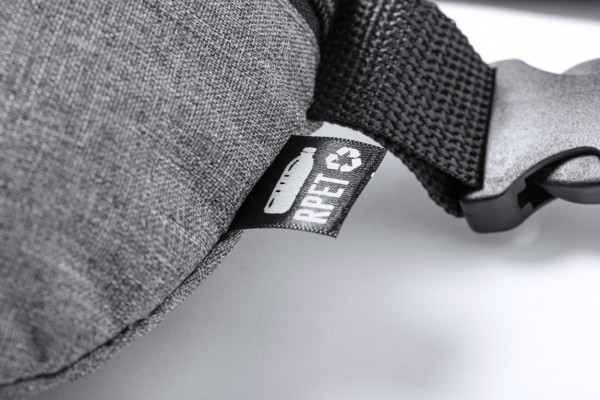 Geantă de talie RPET cu compartiment cu fermoar și curea reglabilă. Cu etichetă distinctă RPET. Poliester 600D RPET.