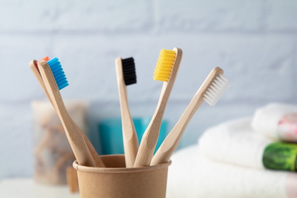 Periuță de dinți pentru adulți din bambus cu perie colorată din nailon.