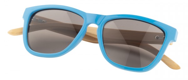 Ochelari de soare cu ramă din plastic colorat și brațe din bambus.