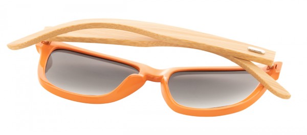 Ochelari de soare cu ramă din plastic colorat și brațe din bambus.