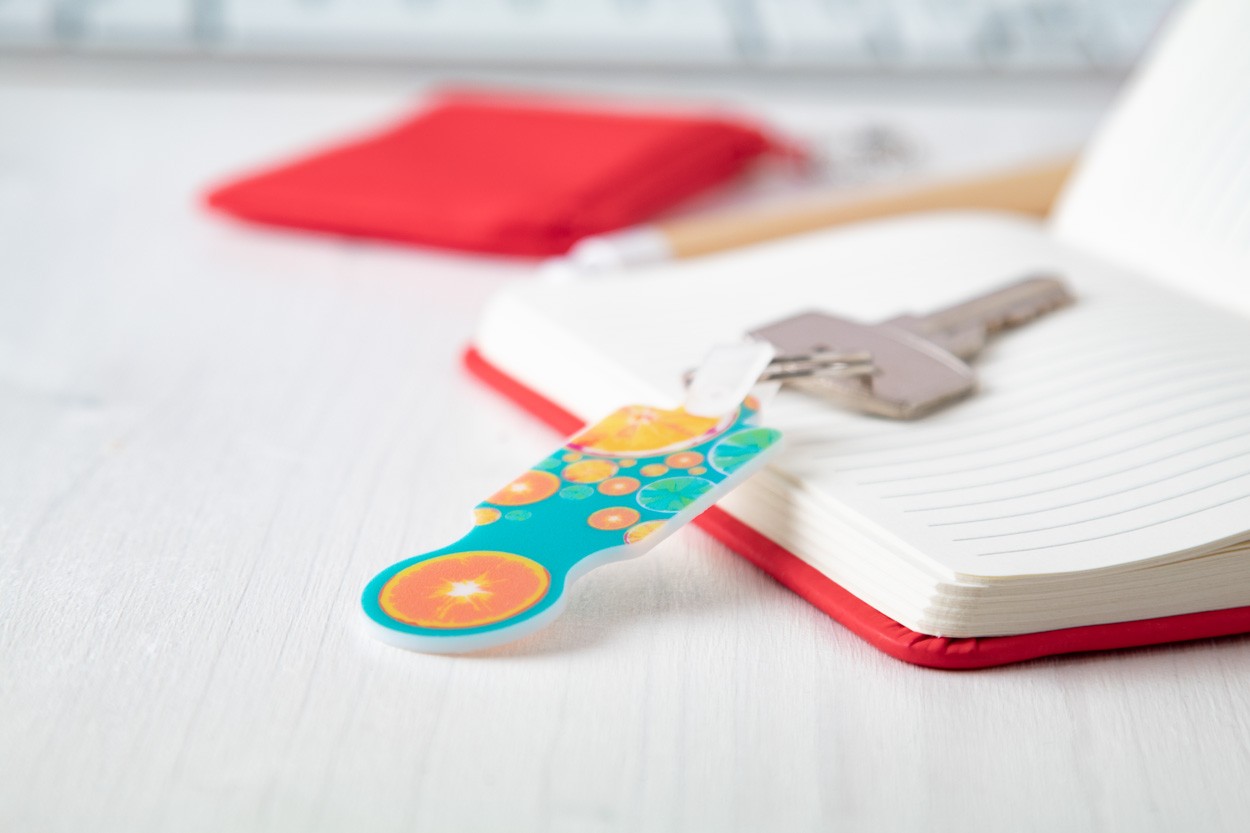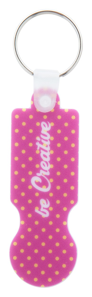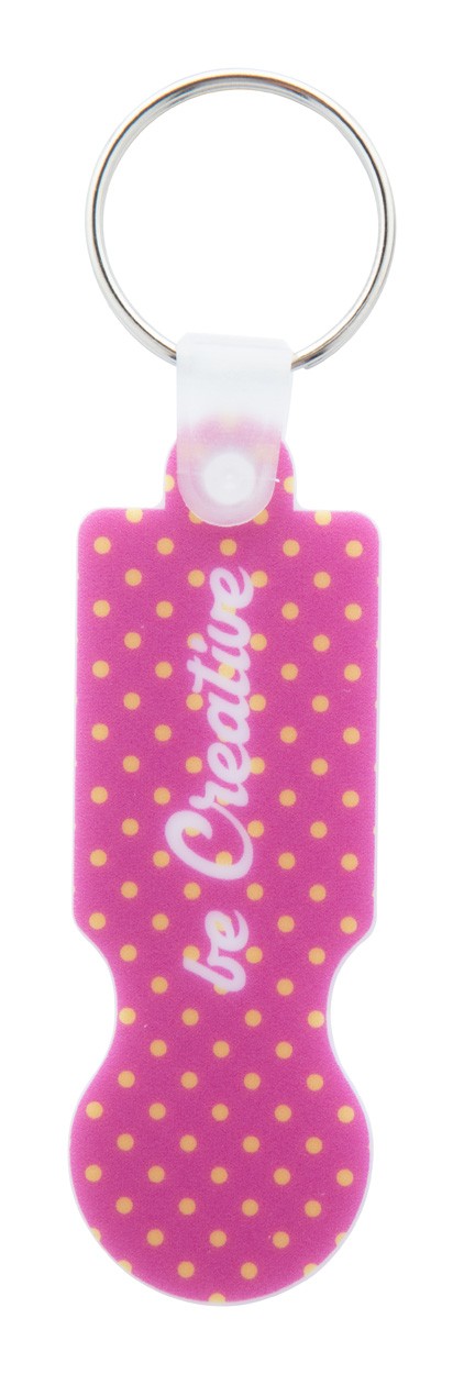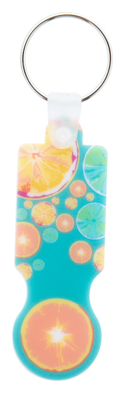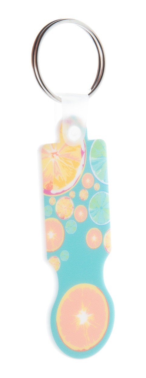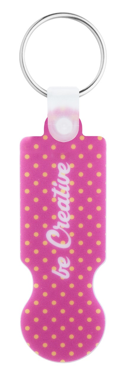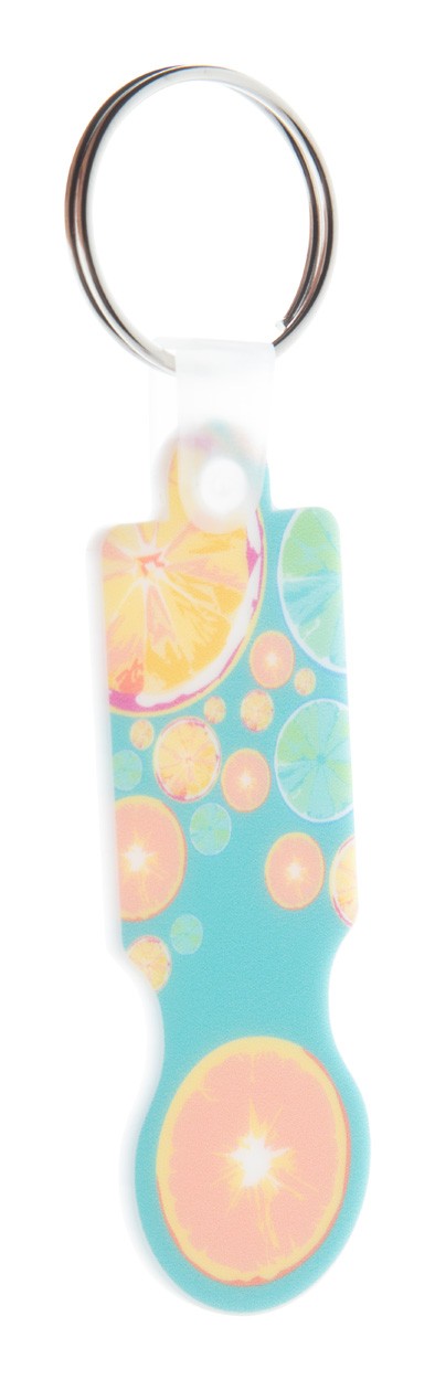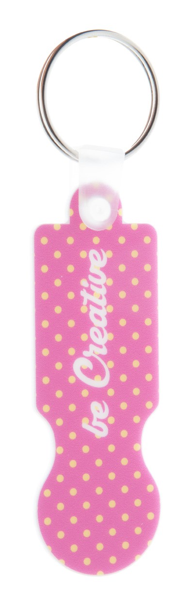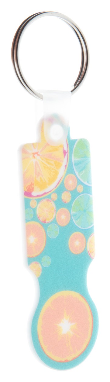 Breloc din plastic cu fisă pentru cărucior. Prețul include imprimarea full colour cu LED UV pe o parte. Cantitate minimă de comandă: 200 buc.
