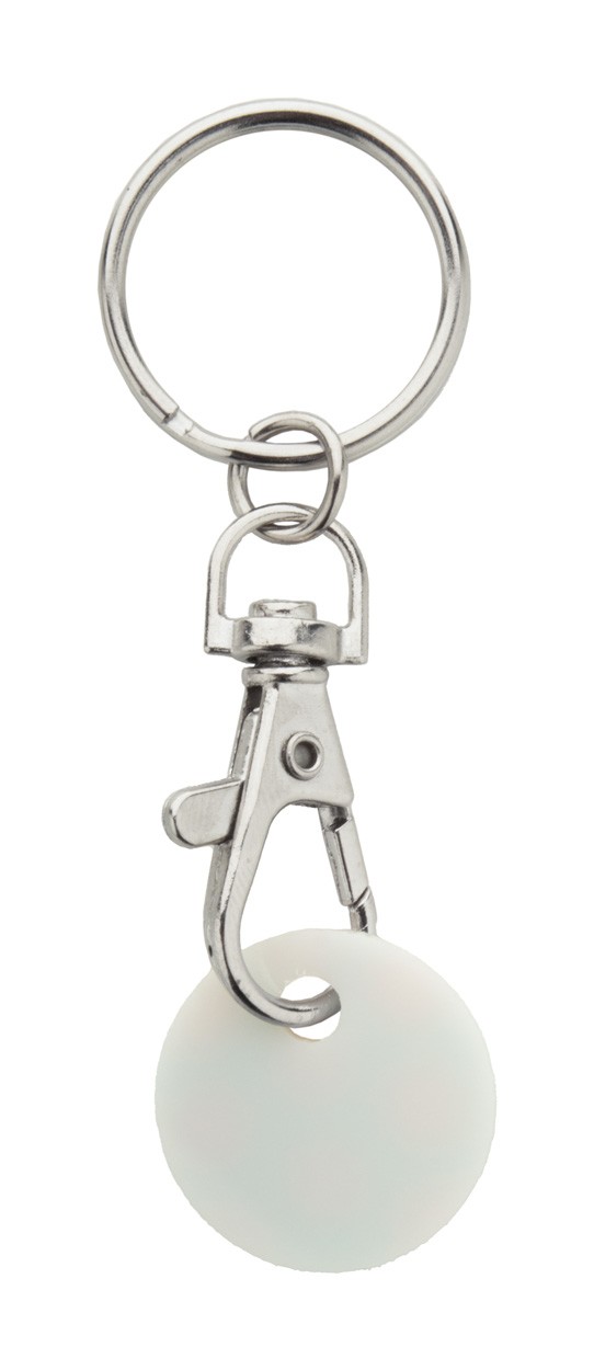 Breloc cu carabină metalică, cu monedă pentru cărucior de cumpărături, din plastic imprimat color. Prețul include imprimarea UV LED pe o parte. Dimensiunea monedei: ø23×2 mm. MOQ: 200 buc.