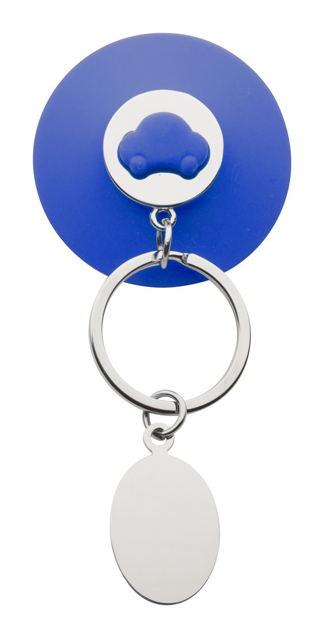 Breloc metalic cu ventuză din silicon, în formă de mașină.