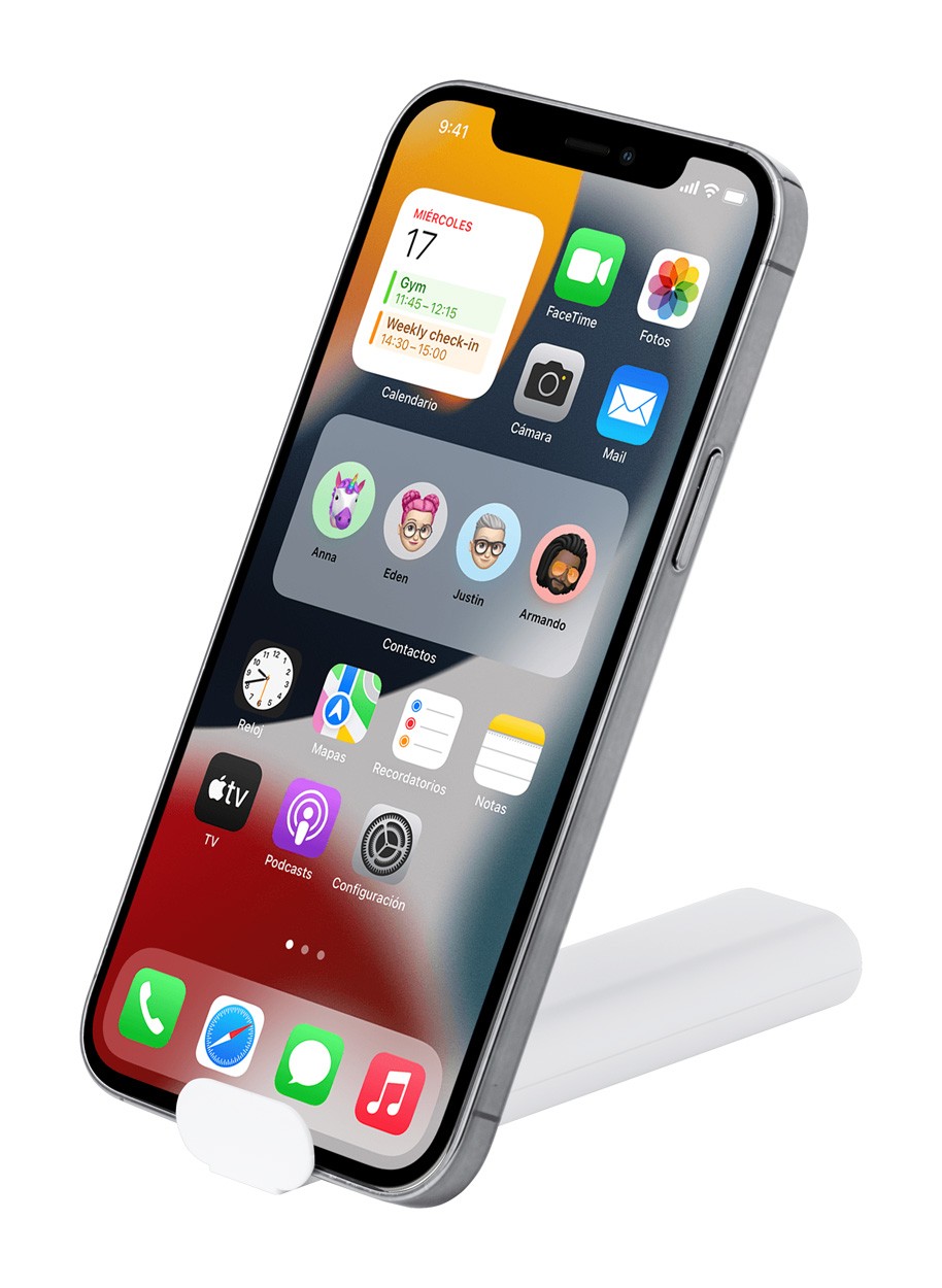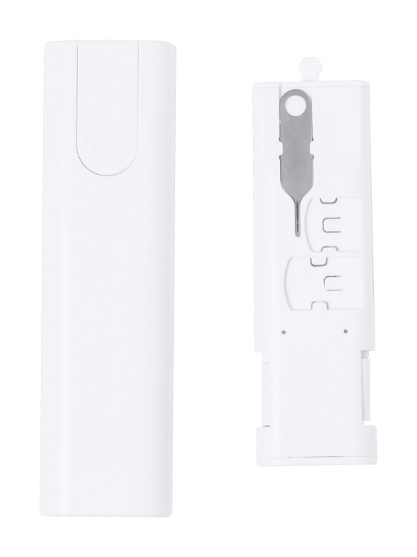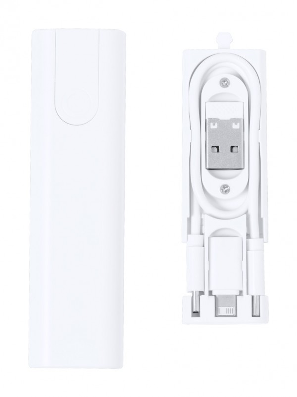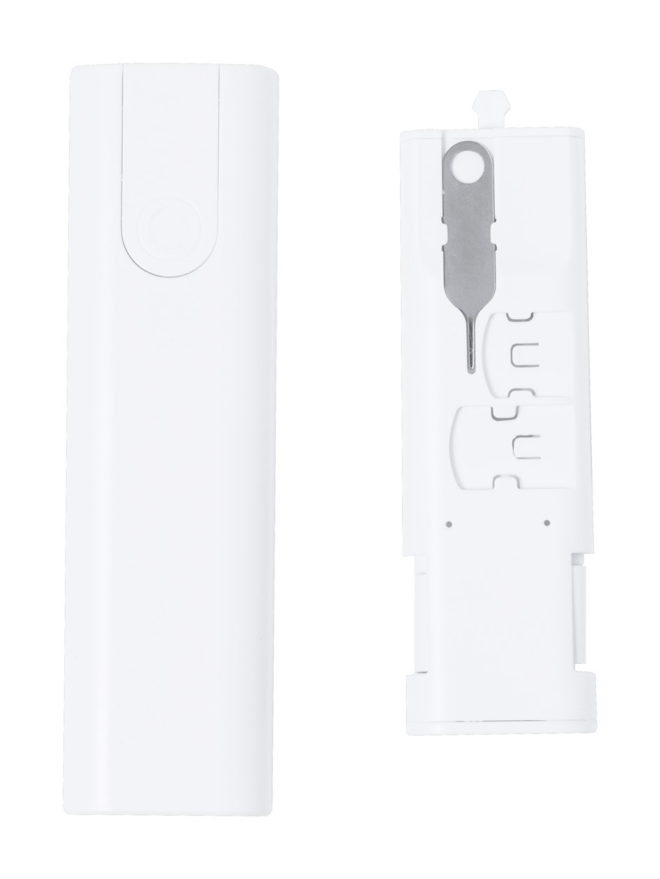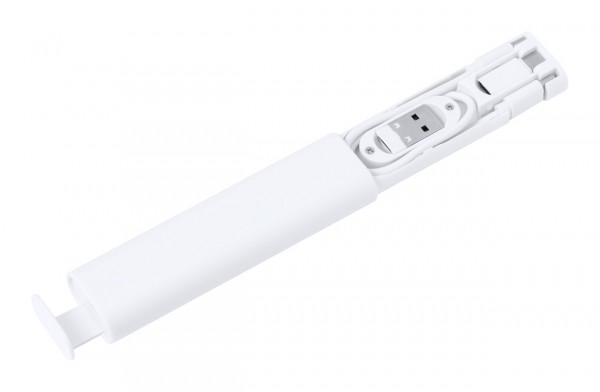 Set cablu de încărcare USB în carcasă din plastic ABS cu funcție de suport mobil. Cu ejector de cartelă SIM și conectori micro USB, USB, USB-C și Lightning.