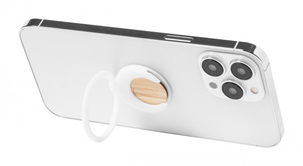 Inel rotund pentru suport mobil din plastic ABS, cu bază autoadezivă și monedă pentru cărucior de cumpărături, din bambus.