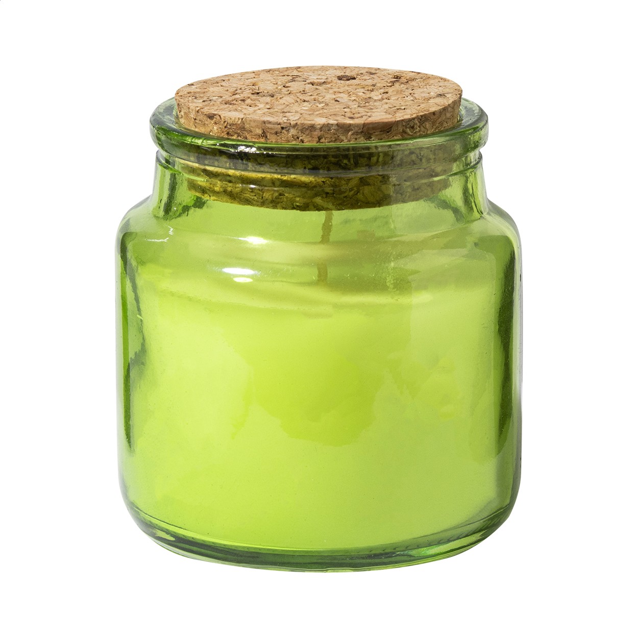 Lumânare din ceară vegetală, cu aromă de vanilie, în suport de sticlă cu capac din plută naturală. Conține 80 de grame de ceară. Durată de ardere: 16 ore. În cutie din hârtie kraft.