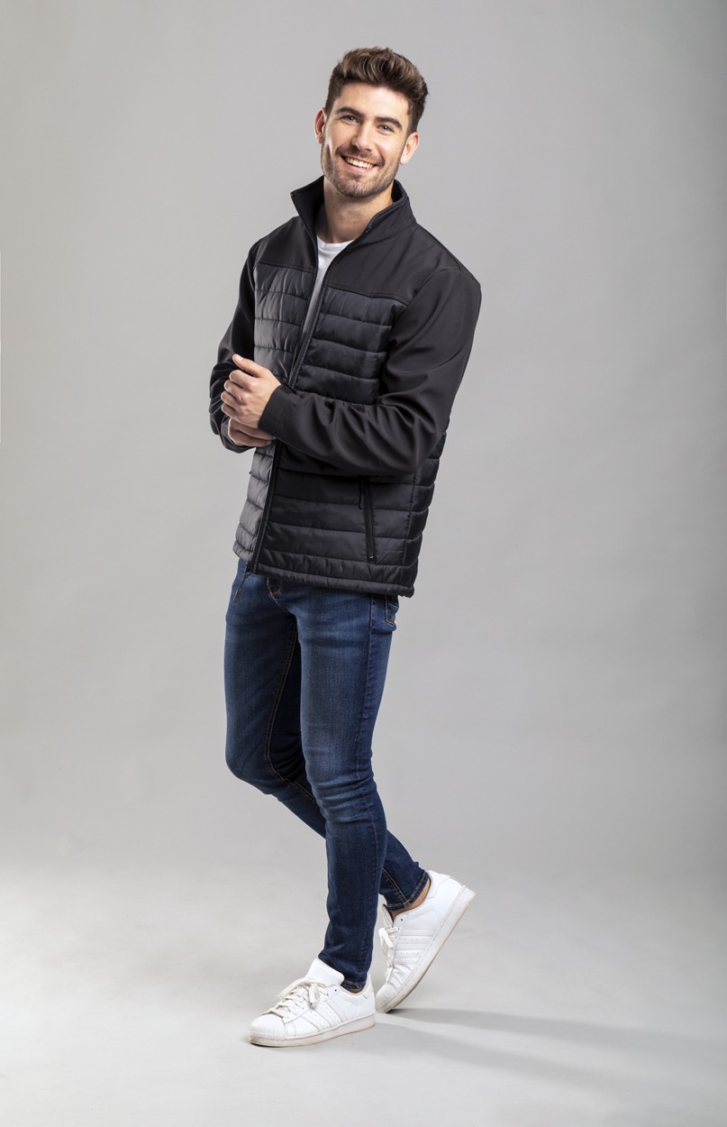 Geacă impermeabilă și respirabilă cu fermoar, din softshell-poliester, cu 2 buzunare laterale.