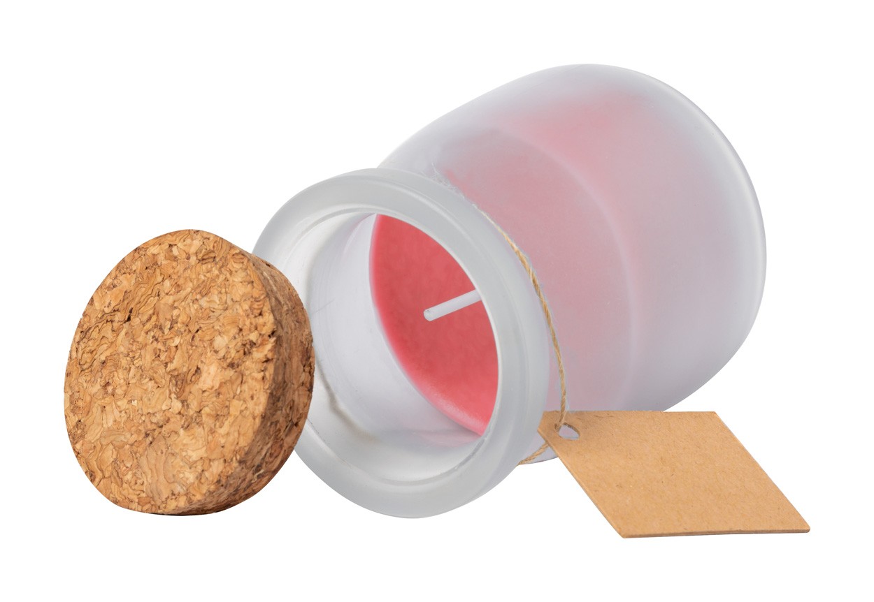 Lumânare parfumată în borcan din sticlă, cu capac din plută.