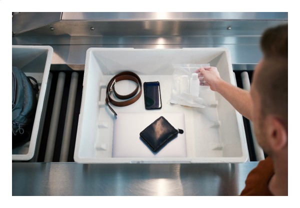 Set de sticle cosmetice, pentru călătorie, cu 3 recipiente PET (40 ml) în suport din ABS reciclat.