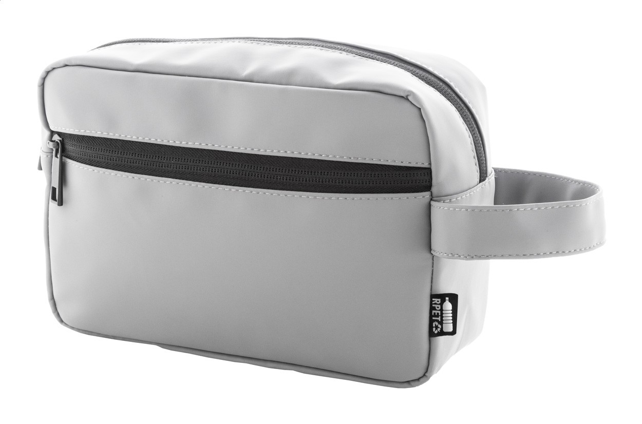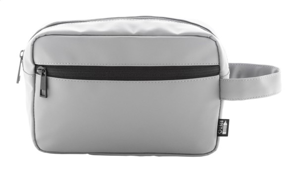 Geantă pentru cosmetice, din piele moale PU reciclată, cu două compartimente cu fermoar și mâner de transport. Cu etichetă distinctivă din PU reciclată.