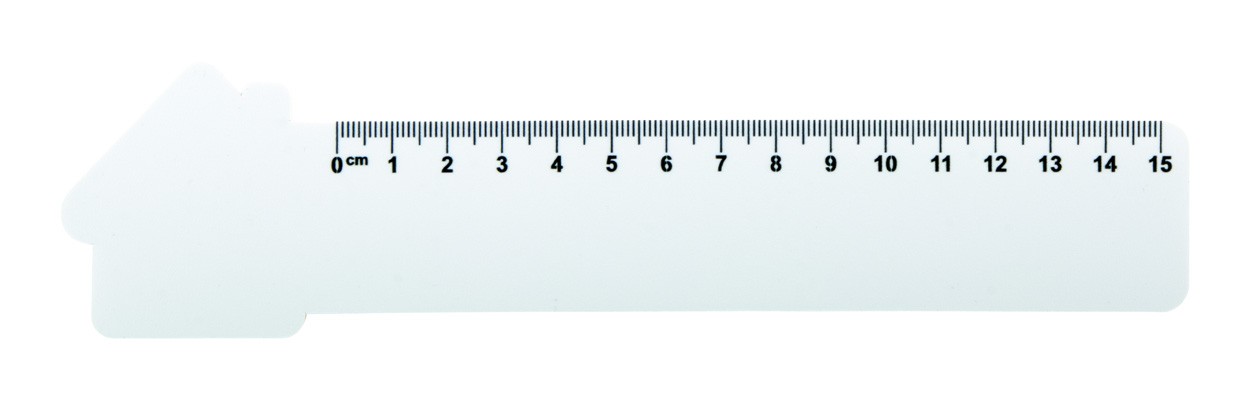 Riglă flexibilă, din plastic în formă de casă, de 15 cm. Prețul include imprimarea cu UV Led Print pe o parte. Cantitate minimă de comandă: 100 buc.
