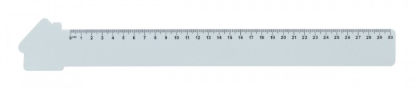 Riglă flexibilă, din plastic în formă de casă, de 30 cm. Prețul include imprimarea cu UV Led Print pe o parte. Cantitate minimă de comandă: 100 buc.