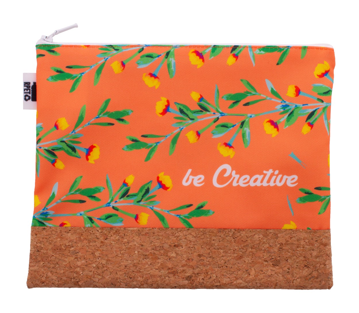 Geantă cosmetică, personalizată, cu fermoar, din poliester 600D RPET și plută naturală. Cu grafică imprimată prin sublimare integrală. MOQ: 50 buc.