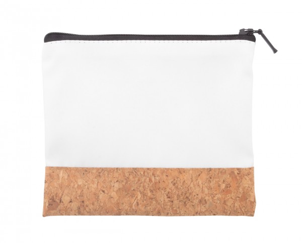 Geantă cosmetică la comandă, cu fermoar, din poliester și plută naturală. Cu grafică imprimată prin sublimare integrală. MOQ: 50 buc.