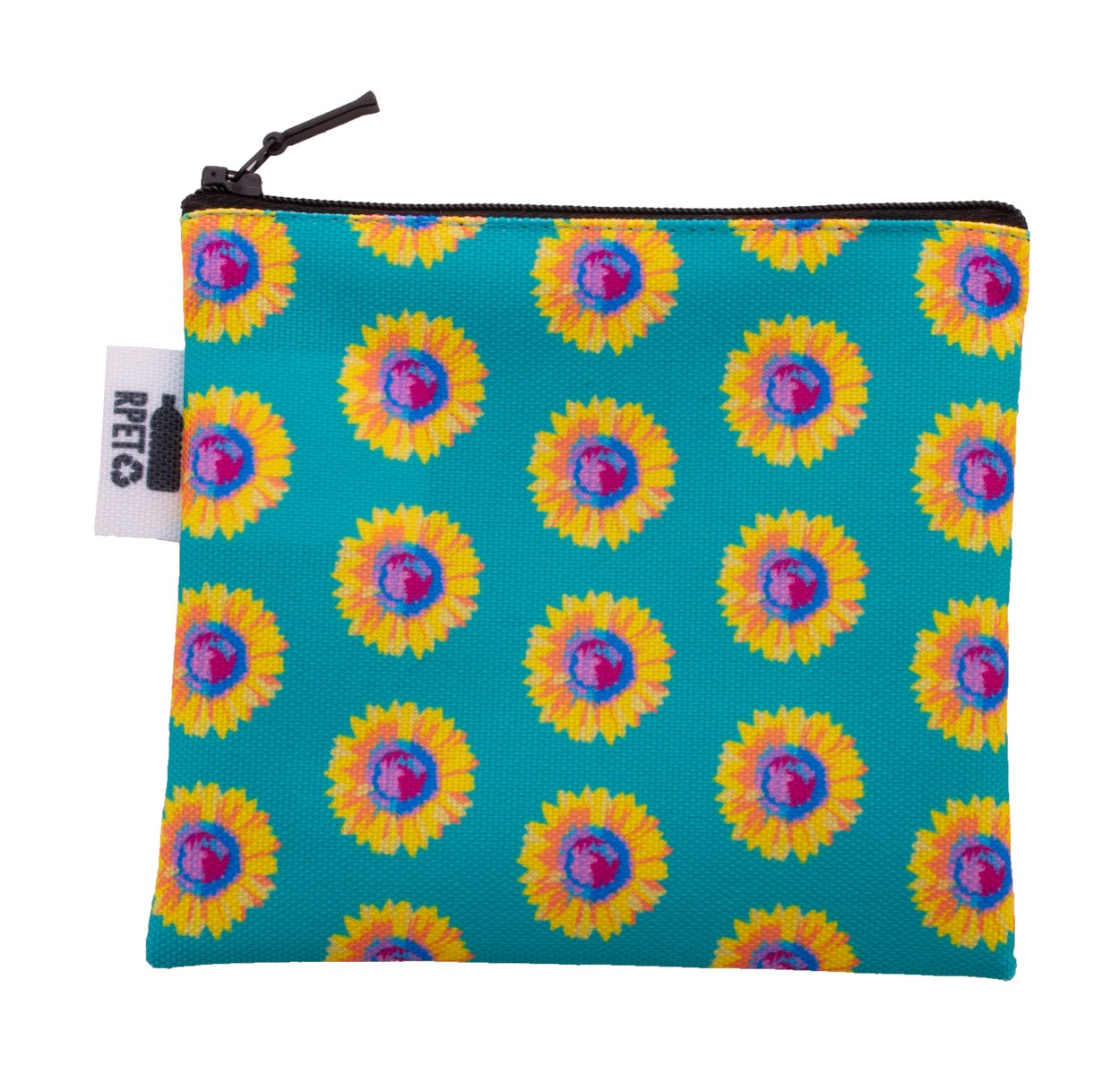 Geantă cosmetică personalizată, cu fermoar, din poliester 600D RPET. Cu grafică imprimată prin sublimare integrală. MOQ: 50 buc.