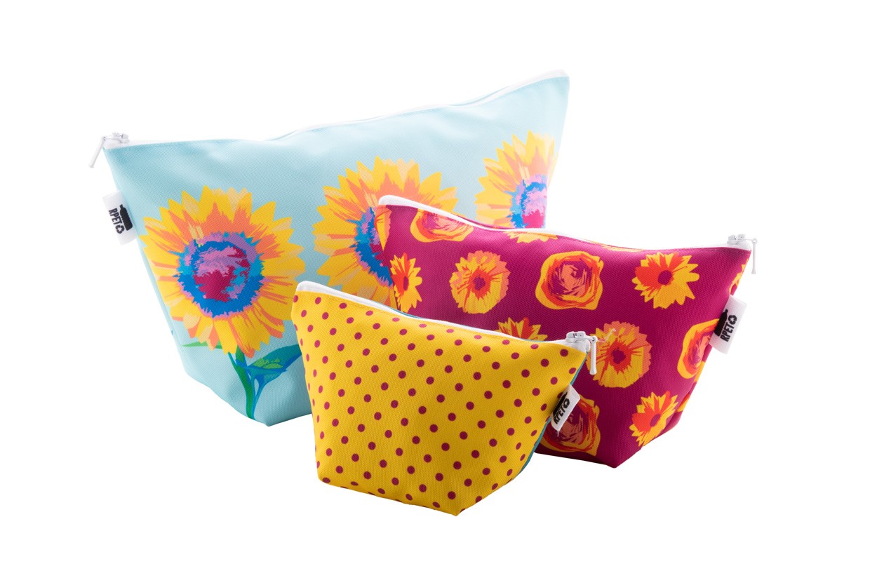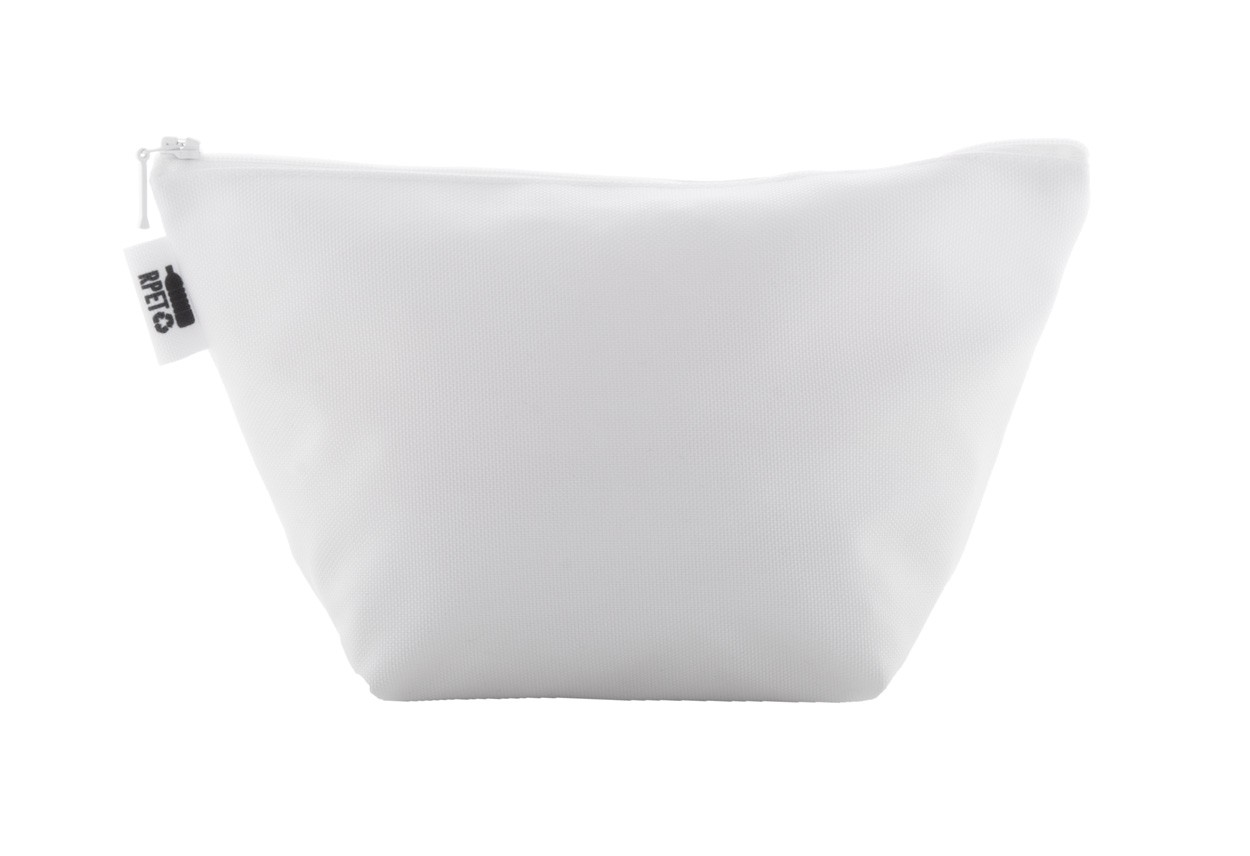 Geantă pentru cosmetice, personalizată, cu fermoar, din poliester 600D RPET. Cu etichetă RPET distinctivă și grafică imprimată prin sublimare. MOQ: 50 buc.
