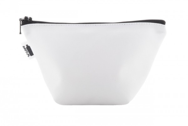 Geantă pentru cosmetice, personalizată, cu fermoar, din poliester 600D RPET. Cu etichetă RPET distinctivă și grafică imprimată prin sublimare. MOQ: 50 buc.
