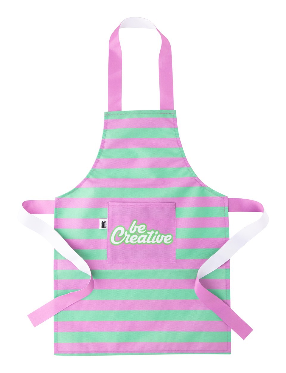 Șorț pentru copii, din poliester 600D RPET, cu buzunar frontal și grafică imprimată prin sublimare. MOQ: 25 buc.