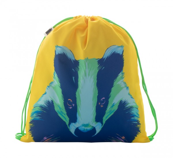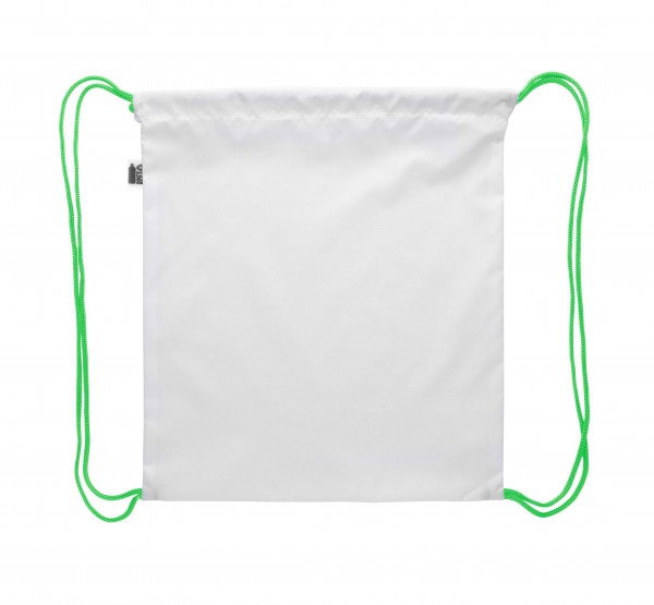 Rucsac cu cordon, personalizat, pentru copii, cu barete colorate, din poliester RPET 190T. Cu etichetă distinctă RPET si imprimare prin sublimare pe intreaga suprafata. MOQ: 25 buc.