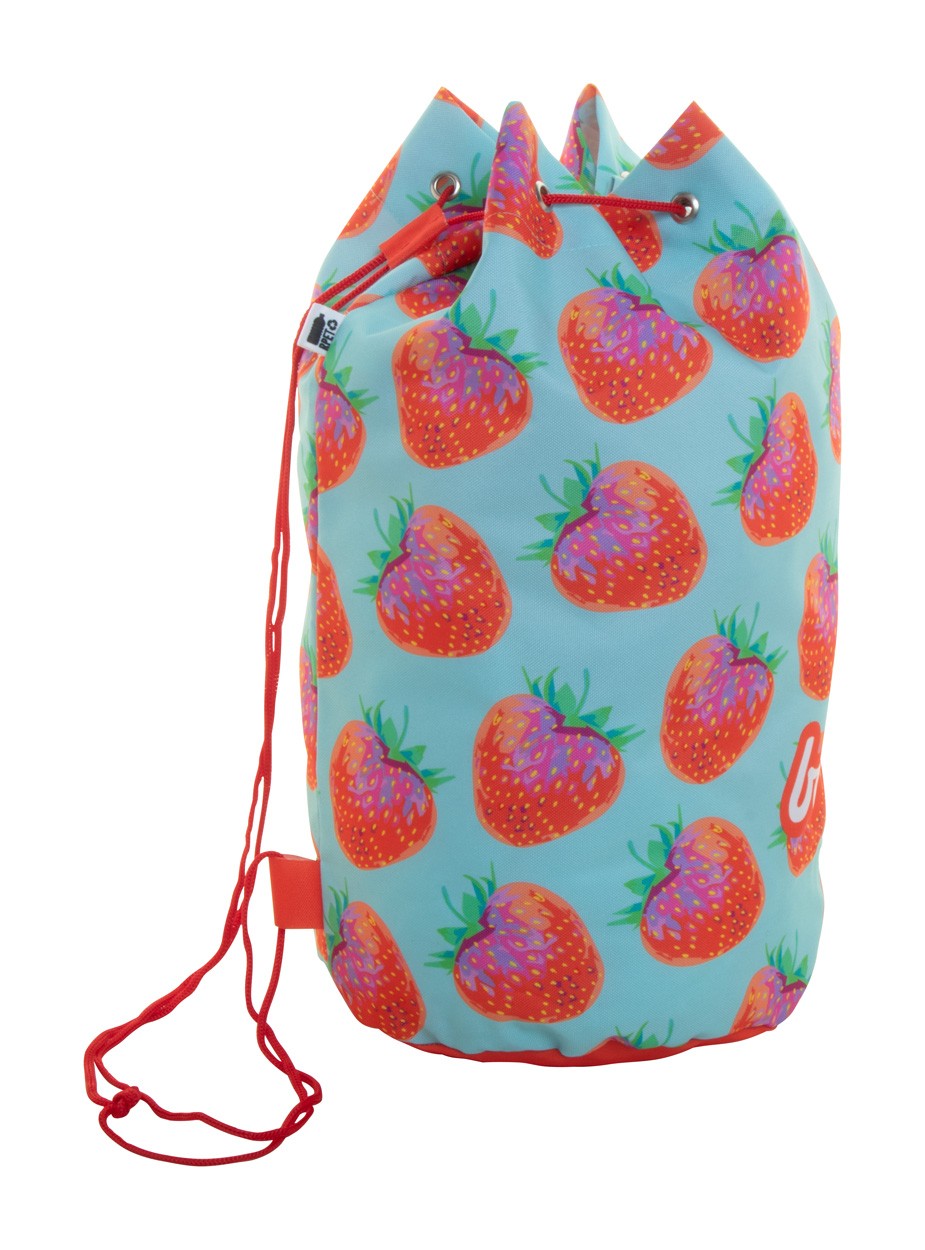 Geantă de marinar, cu șnur, realizată la comandă, din poliester 600D RPET, cu șinuri colorate. Cu grafică imprimată prin sublimare și etichetă distinctivă RPET. MOQ: 25 buc.