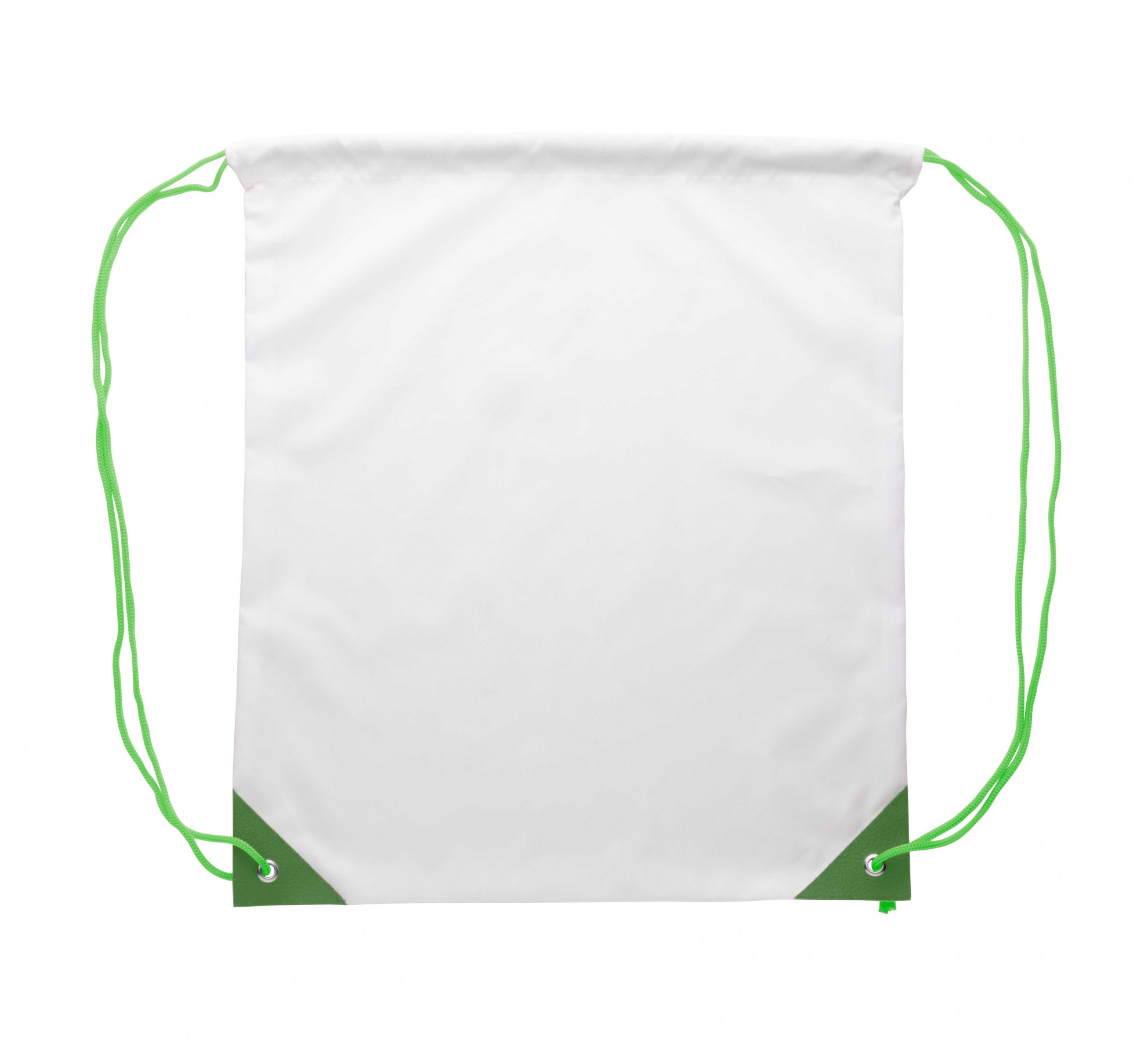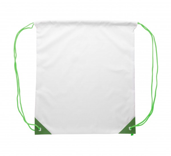 Geantă, personalizată, cu cordon, cu colțuri din piele PU ranforsată și șnururi de culoare asortate, poliester 190T. Cu grafică imprimată pe toată suprafața prin sublimare. MOQ: 25 buc.