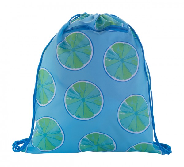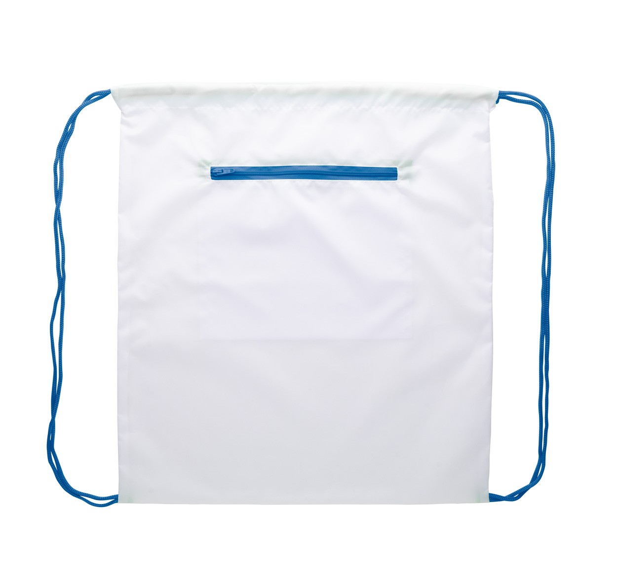 Geantă personalizată cu șnur cu fermoar, buzunar frontal protejat RFID, poliester 190T. Cu grafică imprimată prin sublimare. MOQ: 25 buc.
